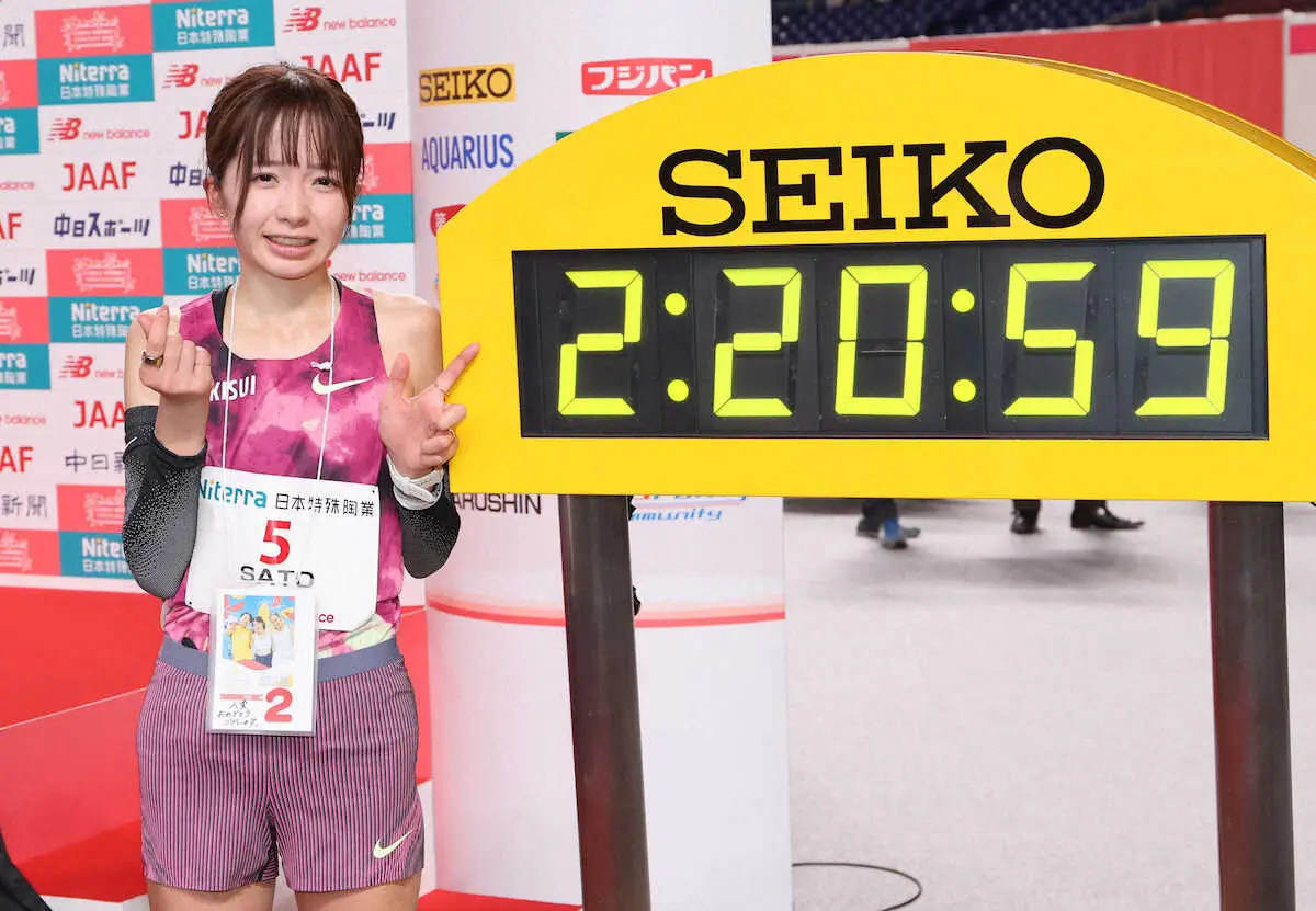 世界選手権東京大会(9月)代表の最終選考レースとして行われ、23年世界選手権代表の佐藤早也伽(30=積水化学)が2時間20分59秒で日本勢最高の2位に入った。対象大会で参加標準記録(2時間23分30秒)を突破した選手の中で最速タイムをマークし、2大会連続の代表入りが濃厚となった。シェイラ・チェプキルイ(34=ケニア)が2時間20分40秒で優勝した。