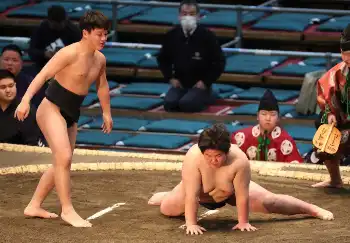 ウクライナ出身の新入幕・安青錦は西前頭16枚目・佐田の海を下手投げで下し、初白星を挙げた。