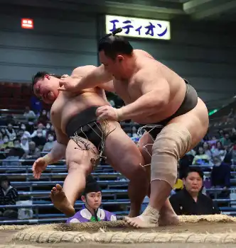 大相撲春場所は13日、エディオンアリーナ大阪で5日目の取組が行われた。2日目から3連勝と巻き返しを狙う新横綱・豊昇龍(25=立浪部屋)が結びの一番で、過去3勝2敗ときっ抗している西前頭2枚目・千代翔馬(33=九重部屋)に寄り切られ2敗に後退した。
