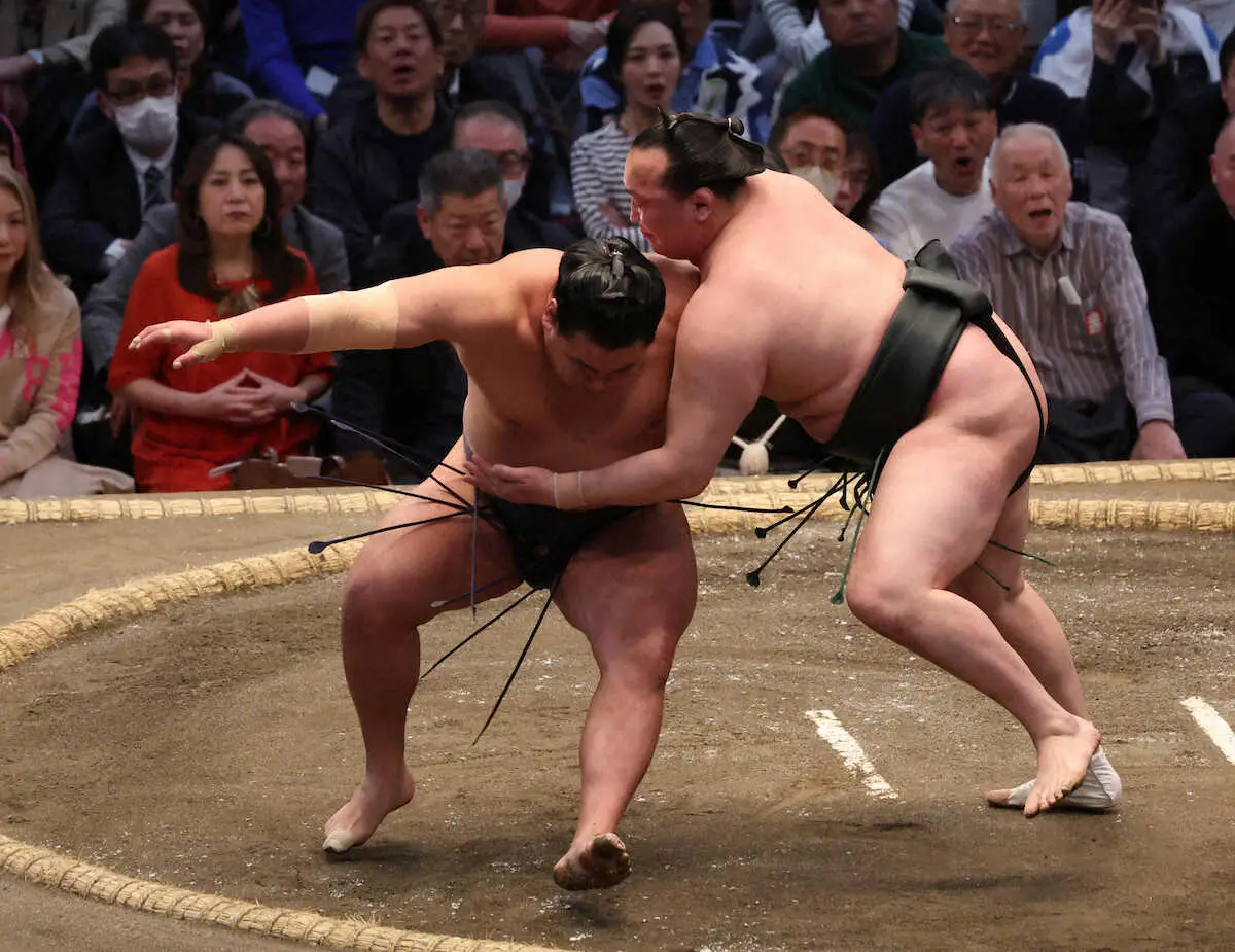 初のカド番となった琴桜は西前頭3枚目・隆の勝との激しい攻防戦の末、最後は押し出され2勝3敗と再び苦境に立たされた。