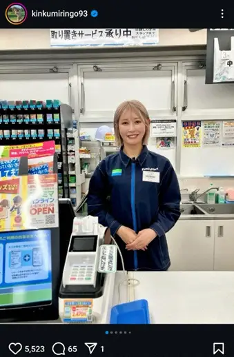 この投稿にフォロワーらからは「素晴らしい~」「素敵な体験ですね」「金田プロが店員なら、毎日ファミチキ買いに行きます」「レジ打ち早そうwww」「お綺麗です。売上が200パーセントになります」「めちゃ似合います」などの声が寄せられている。