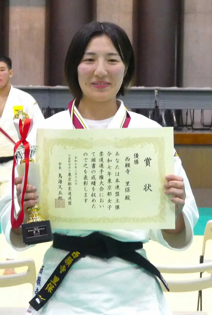 全日本女子柔道選手権(4月20日、横浜武道館)の予選を兼ねた東京都女子柔道選手権大会が16日、東京武道館で行われ、西願寺里保(26=コマツ)が初優勝を果たした。