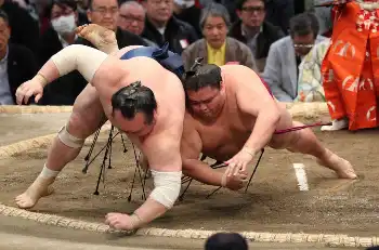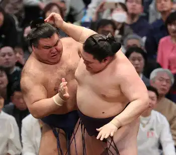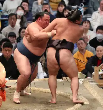 結びの一番では、関脇・大栄翔が大関・琴桜と対戦。五分の立ち合いから先に攻め続けた琴桜が最後は寄り切り。カド番脱出まであと1勝となる7勝目をつかんだ。大栄翔は優勝争いが2差と遠のく4敗目を喫した。祝日の12日目は、幕の内で「物言い」が3番出るなど際どい勝負が多く館内は大盛り上がり。終盤も2敗首位直接対決や、優勝争いに食らいつく大栄翔とカド番大関の琴桜との対決もあり熱気が冷めぬ一日となった。
