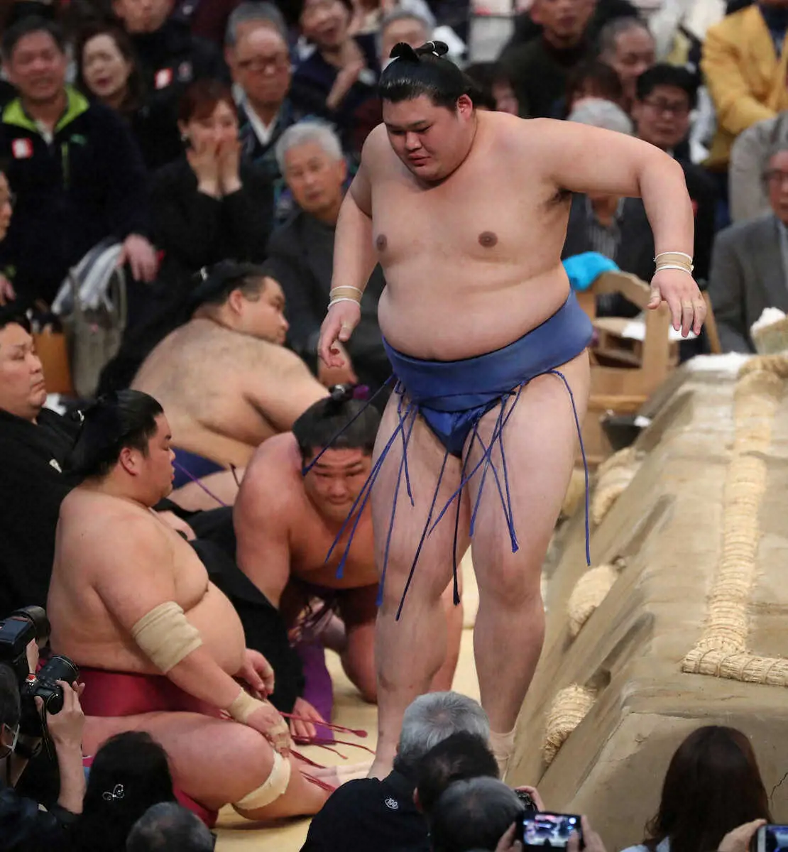 大相撲春場所は20日、エディオンアリーナ大阪で12日目の取組が行われ、結び前の取組で優勝争いトップで並ぶ大関・大の里(24=二所ノ関部屋)と西前頭6枚目の尊富士(25=伊勢ケ浜部屋)が激突。大の里がはたき込みで勝利し2敗をキープした。