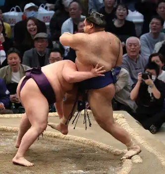 同じく4敗同士対決、ウクライナ出身の新入幕・安青錦と西前頭6枚目・尊富士の対戦は寄り切った安青錦が10勝と星を伸ばした。