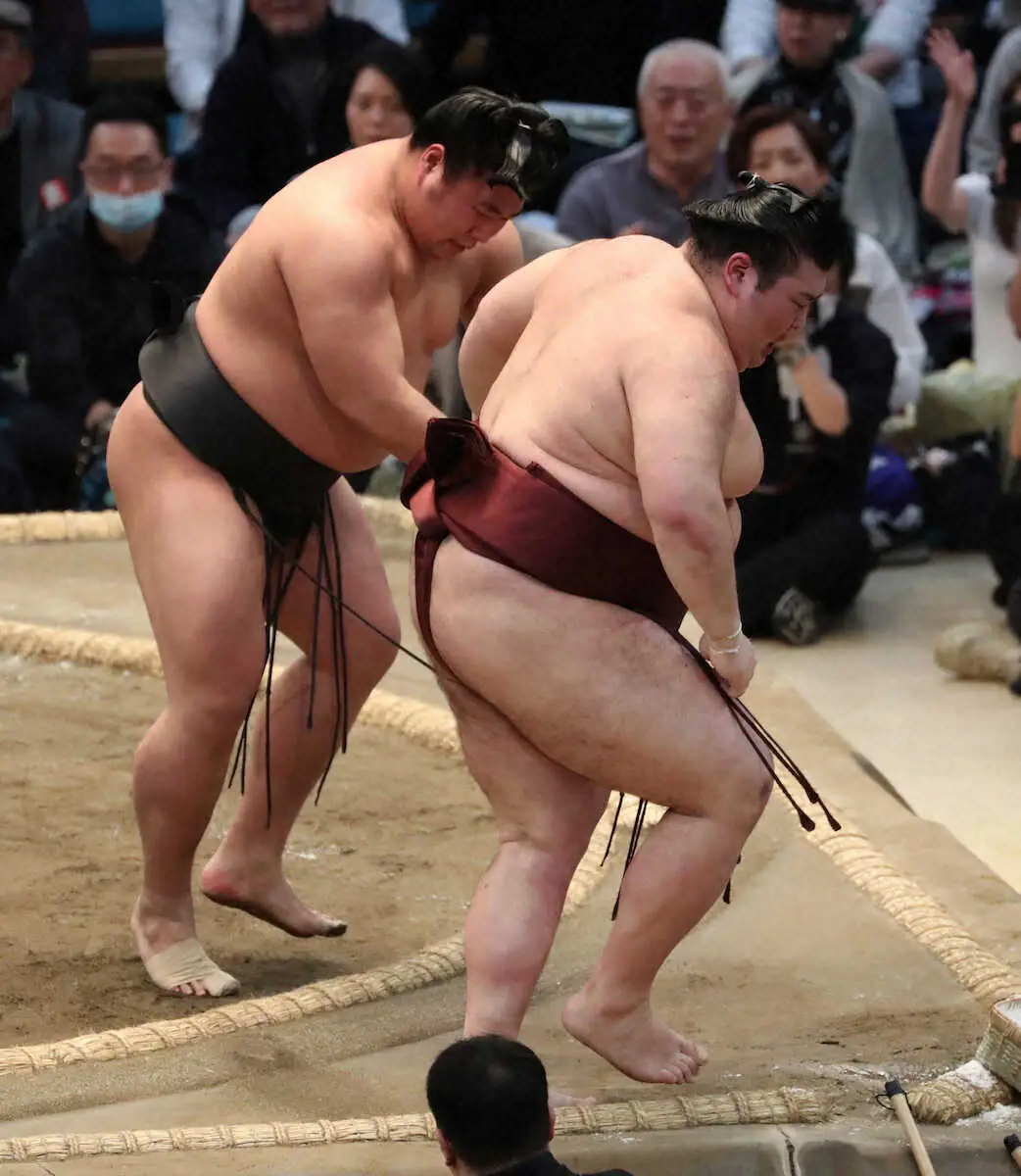 西前頭筆頭の若元春(31=荒汐部屋)は東前頭8枚目の熱海富士(22=伊勢ケ浜部屋)を寄り切り、8勝目を挙げた。