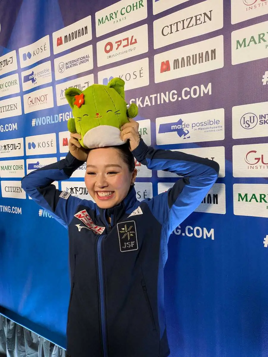 演技後は喜びを爆発させ「うれしいです。今日の朝、72点くらい出さないとなと思って試合に入った。目標達成できてうれしい。今季の中で一番落ち着いていた。完璧に近いショートが滑れた」と声を弾ませた。