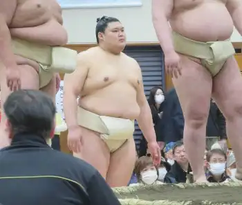 春場所では13日目、大栄翔にはたき込まれたが千秋楽は王鵬を切り返し、新入幕ながら両関脇と対戦した。