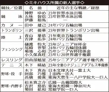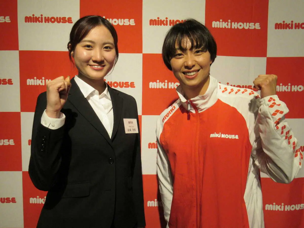 ミキハウスの入社式とウエルカムパーティーが1日、大阪府内で行われ、4月から入社および所属するアスリートが出席した。パリ五輪フェンシング女子サーブル団体銅メダルの尾崎世梨(22)は、3年後のロス五輪の目標に個人と団体での金メダル獲得を掲げた。過去に多くの金メダリストを輩出した同社のサポートを受け、世界の頂点を目指す。