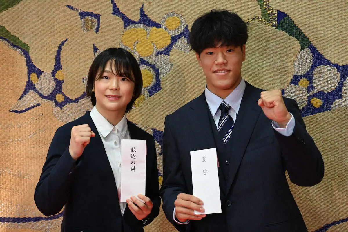日体大の入学式が3日、東京都世田谷区のキャンパスで行われ、在校生を代表してレスリング女子57キロ級の藤波朱理(4年)が歓迎の辞を述べた。22年4月の入学式では新入生を代表して宣誓の言葉を述べている藤波は、大役も2度目とあって堂々と約2000人の新入生を前にあいさつ。「3年前を思い出した。緊張しながら、ワクワクしながら出席したのを思い出した。(大学生活は)あと1年、しっかりやり切りたい」と振り返った。