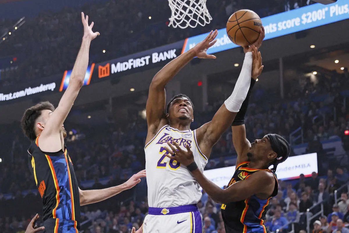 レイカーズの八村塁(27)が6日(日本時間7日)の敵地サンダー戦に先発出場。得意の3Pシュートを2本決めるなど11得点7リバウンド。チームは前半から大量リードを奪って、西首位のサンダーを撃破して2連勝を飾った。