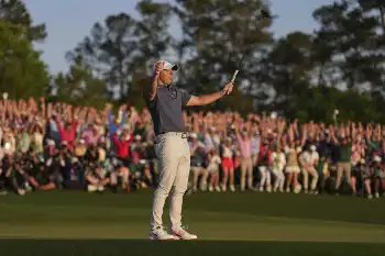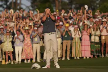 最終ラウンドをホールアウトし、インタビューで笑顔を見せる松山英樹
