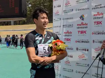 男子200メートルは経験豊富な飯塚が勝った。加速体勢の50メートル付近で強風にあおられつつも直線で持ち直した。ともにパリ五輪に出場した鵜沢、世界選手権参加標準記録(20秒16)突破済みの水久保が棄権した中で実力を示した。「勝つのは気持ちが良い。こんな風が吹いたレースはあまりない。刺激が入りました」。東京開催の世界選手権は自身が生まれた91年以来。不思議な縁もあり「特に気持ちを入れて目指す」と出場を熱望した。