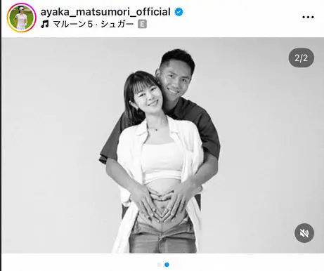 松森は2023年12月にプロサッカー選手の吉野恭平と結婚。松森のふっくらとしたお腹に吉野が手を添える写真を投稿し、「このたび、新しい命を授かりました」と明かした。