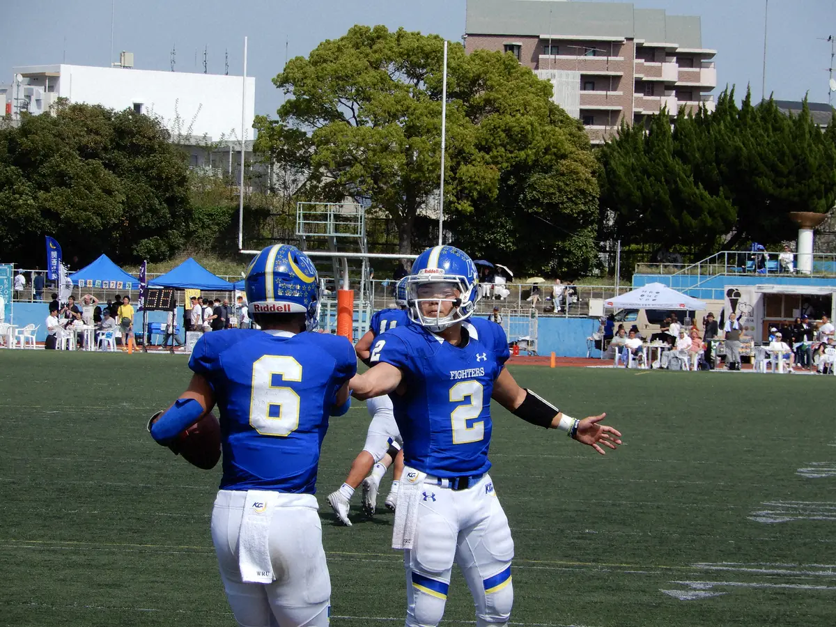 前半をプレーした司令塔の自己評価は激辛だった。負傷退場した昨年10月の「関関戦」以来となる実戦。第1Qに唯一のTDとなるパスをWR五十嵐太郎(4年)にヒットさせたとはいえ、持ち前の小気味いいプレーは、まだ影を潜めたまま。後半に登場した弟・太吾(2年)とのポジション争いは、今年もより高いレベルで繰り広げられる。