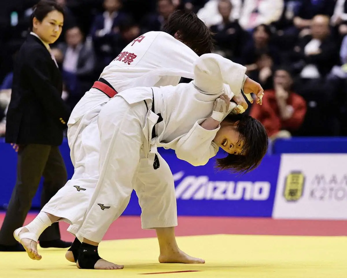 「まさか決勝の舞台に(立てる)とは思わなかったけど、ここまで来たらあと一つ勝ちたいと思った。決勝前に監督から“優勝したらすごいぞ”と言われた」。決勝は78キロの田中伶奈(25=大阪府警)と対戦。勝てば第1回大会(1986年)を制した当時61キロ級の八戸かおりを超える史上最軽量優勝だったが、5分29秒の熱戦の末に大外刈りで一本負けした。