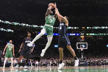 東カンファレンスでは、昨季王者セルティックス(第2シード)とマジック(第7シード)が対戦。初戦を勝利したセルティックスは、エースのジェイソン・テイタムが右手首の負傷で欠場しながらも第2Q開始早々に14ー5のランを決めるなど、前半からリード。ジェイレン・ブラウンがチーム最多36得点10リバウンドの活躍で109ー100で2連勝を飾った。
