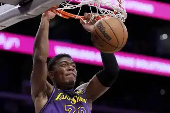レイカーズ背水の陣…八村塁がゴベア越し豪快ダンク!2本の3P含む10得点 前半は10点リード許す
