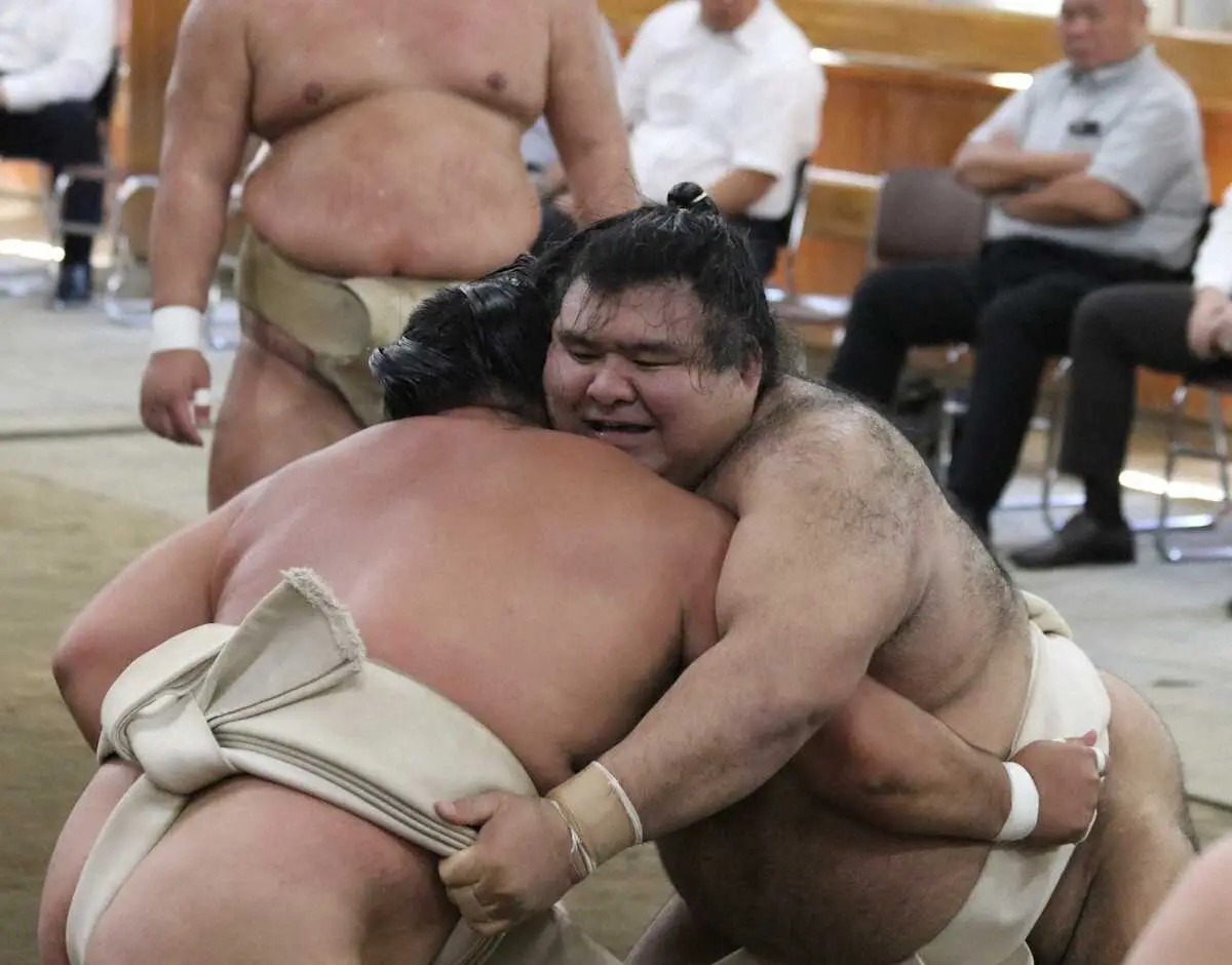 2日の横綱審議委員会の稽古総見には参加せず。「行きたい気持ちはあったけど、ぐっとこらえた。相撲を取れないわけじゃないけど、無理しなかった」。1日に行われた二所ノ関一門の連合稽古以来となる相撲で力強い寄り、頭をつけて攻め込むなど存在感を示し「無理なくできた」と語った。
