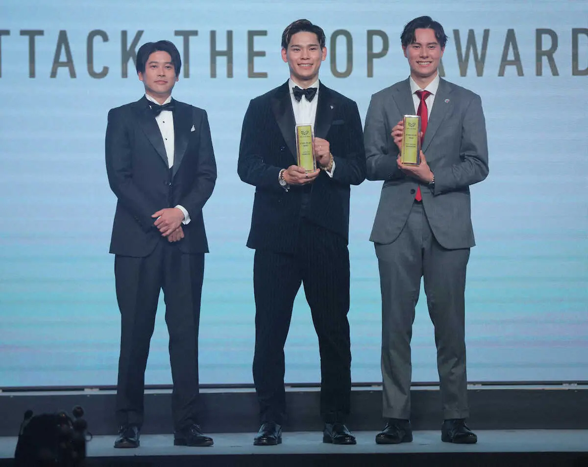 <SV. LEAGUE AWARDS 2024-25>特別表彰を受ける大阪B・西田(中央)とサントリー・高橋藍(右)。左はプレセンターの内田篤人氏(撮影・松永 柊斗) Photo by スポニチ スポーツ界の“イケメン”競演!サッカー内田篤人氏がSVリーグアウォーズ登… ギャラリーで見る この記事のフォト 2025年05月08日の画像一覧 もっと見る 2025年05月08日の画像をもっと見る