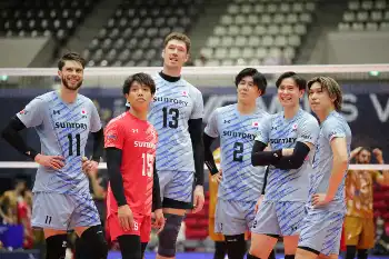 <サントリー・ムハッラククラブ>第3セット、仲間と笑顔を見せるサントリー・高橋藍(右から2人目)(撮影・後藤 大輝) Photo by スポニチ 【バレーボール】サントリーがACLで4強進出 思い出の場所で高橋藍が躍動 ギャラリーで見る この記事のフォト 2025年05月16日の画像一覧 もっと見る 2025年05月16日の画像をもっと見る