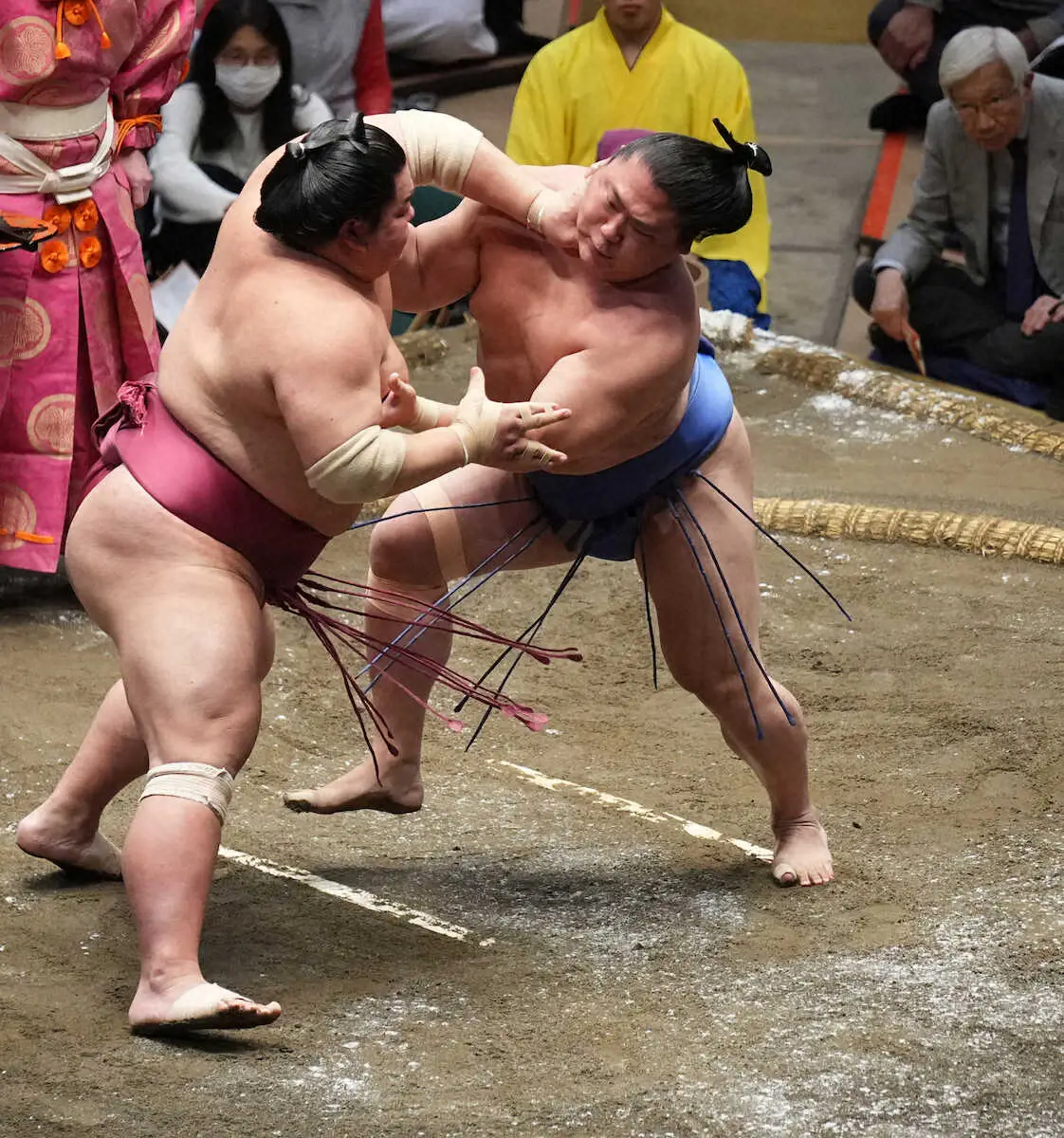 立ち合いで低く当たり、大栄翔の突き押しを下からおっつけ。左右のハズ押しで一気に勝負をつけた。「下から良い攻めができた。立ち合いを含めて良かった」と満足そう。稽古量も増え「強くなりたいと思ってやっているので」と前を向く。