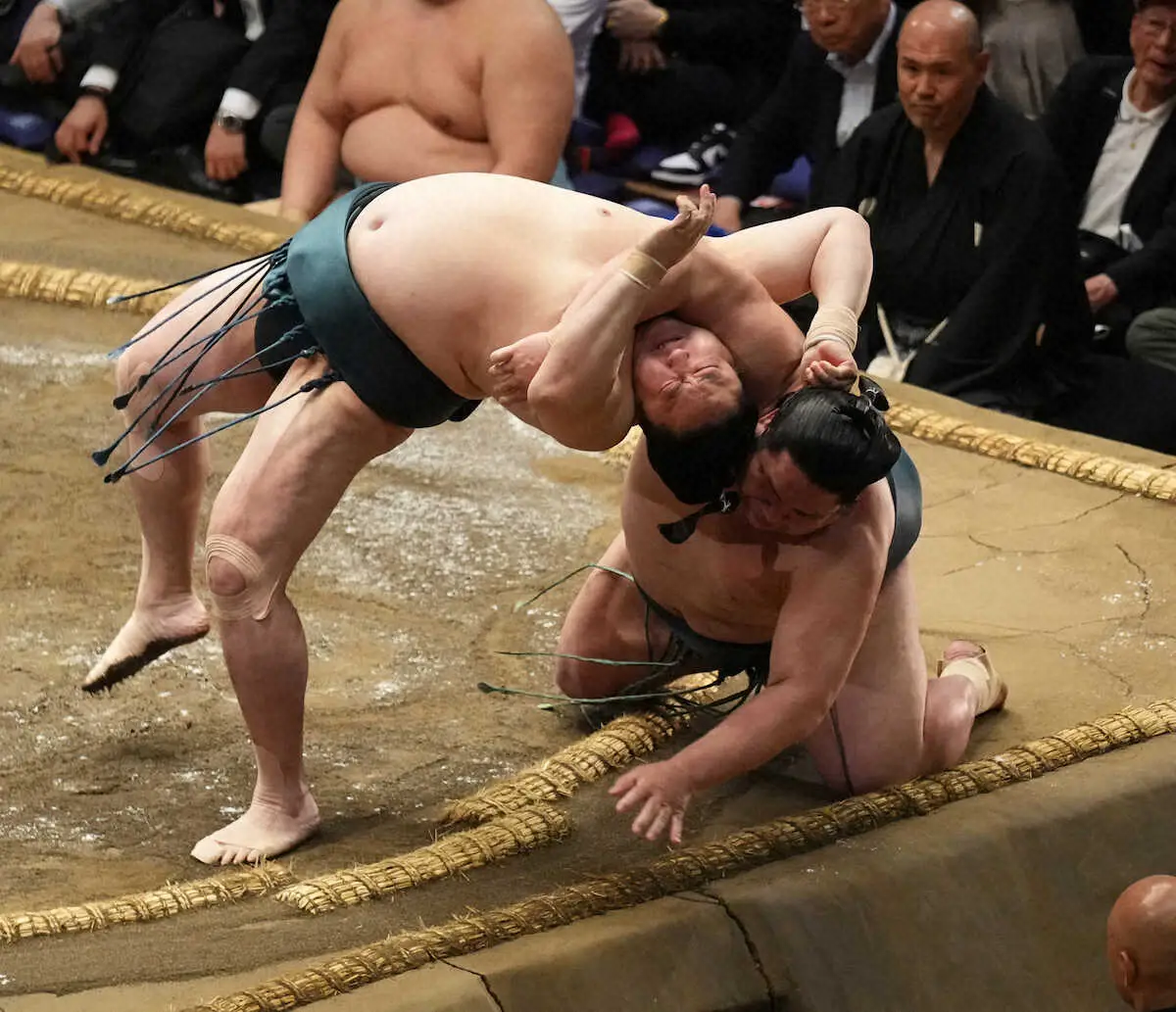 出足鋭く佐田の海を追い込んだが、土俵際でまさかの落とし穴。漁師が網を引くように左腕をひねり飛ばされた。「網打ちで勝って、網打ちでやられました」。