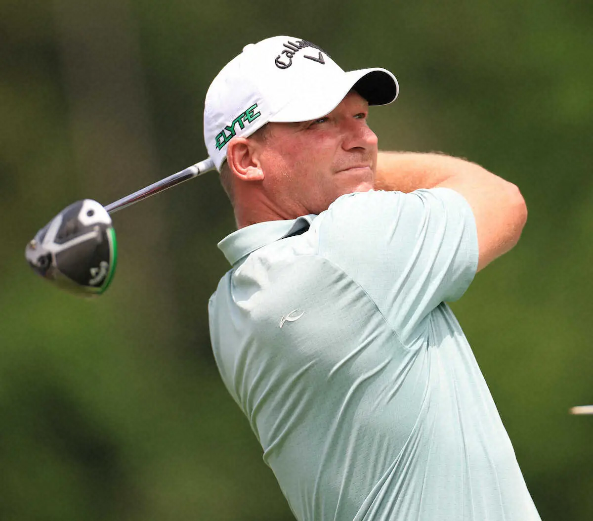 <日本プロ選手権・2日目>1番、ティーショットを放つS・ノリス(撮影・中辻 颯太)