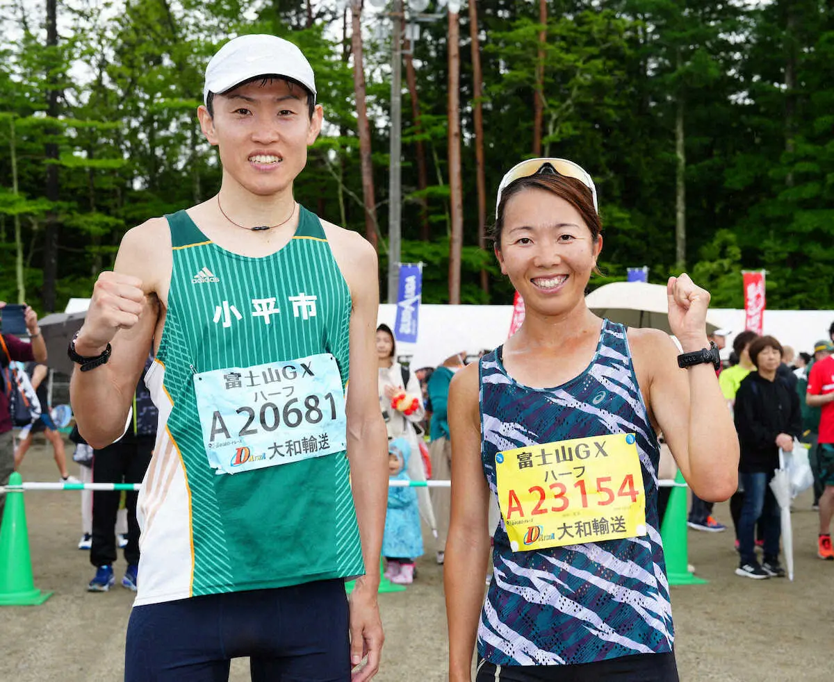 ハーフの部男子優勝の大橋秀星、女子優勝の田中礼美