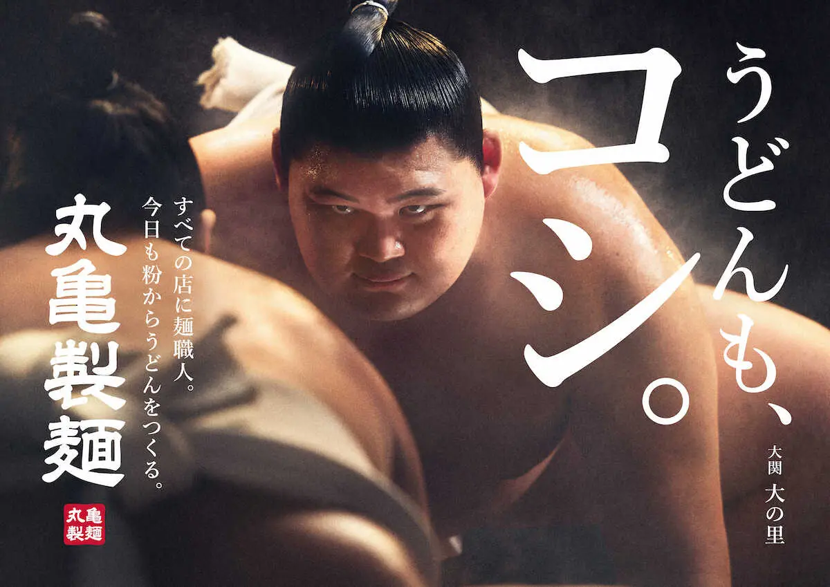 【「唯一無二」の新横綱 大の里(下)】今年1月、国技館の最寄り駅、JR両国駅構内にインパクトのある掲示物が登場した。「うどんも、コシ。」のキャッチフレーズと、どアップの大の里。斬新なポスターが利用客の関心を引いた。当時の大の里は大関。起用した大手飲食店チェーンの丸亀製麺(本社・東京都渋谷区)が経緯を説明する。「相撲道に対する人一倍の努力と真摯(しんし)な姿勢、唯一無二の存在を目指す大の里関に、今まさに、新しい外食企業の成長戦略に挑もうとする丸亀製麺が大変な共感を覚えました。ぜひ私どもの姿勢の象徴として大の里関にご出演をいただきたいと考えました」。ポスターだけでなく一部店舗ではPR映像も流れた。デビューから2年で頂点まで駆け抜けた「令和の怪物」の無限の可能性は企業の理念にも合致する。広告代理店の関係者は「横綱昇進でCM起用などの需要は間違いなく高まります」と分析した。