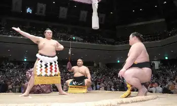 先輩横綱の豊昇龍が東方で土俵入りを行った後に館内放送で「新横綱・大の里の土俵入りであります」と紹介された。その瞬間、館内はどよめきに近い歓声に包まれた。大の里は西の花道から露払いに隆の勝、太刀持ちに高安を従えて登場し雲竜型を披露した。土俵入りの所作は東西では足の踏み出し方が逆になるが、西から上がった大の里は手順通り左足から前に出して間違えることなくやりきった。時間は1分21秒。「大勢の前で土俵入りできたのはうれしい」と表情を緩めた。