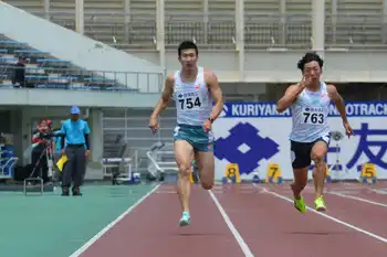 試合会場のヤマタスポーツパーク陸上競技場(鳥取県立布勢総合運動公園陸上競技場)は、21年6月6日に山縣が9秒95の日本新記録を樹立した場所として知られる。