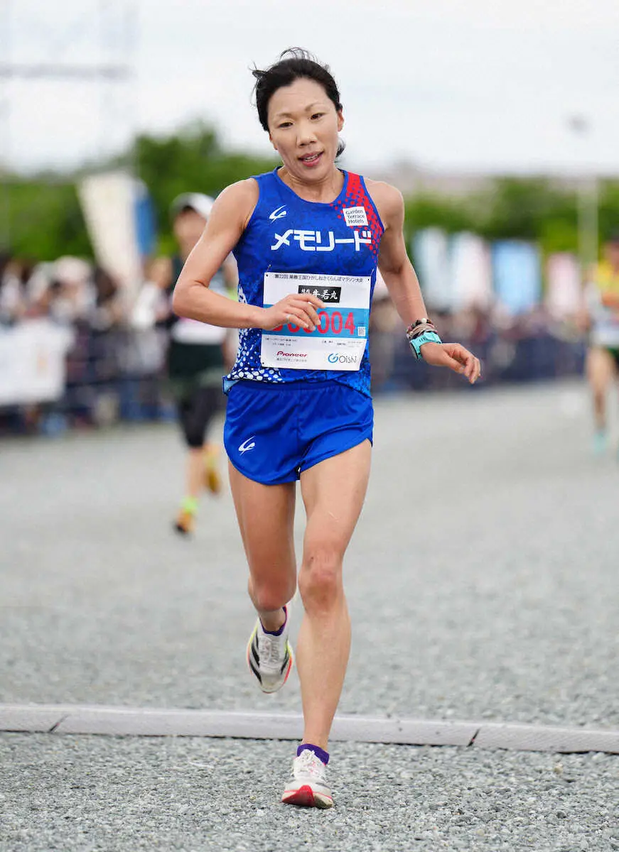 「知り合いのおばちゃんが山形にいて、会いたくて来ました。沿道でも彼女が応援してくれた」と笑顔。1時間16分24秒の好タイムをたたき出し、40代での総合Vに「男性選手にも引っ張ってもらった」と振り返った。