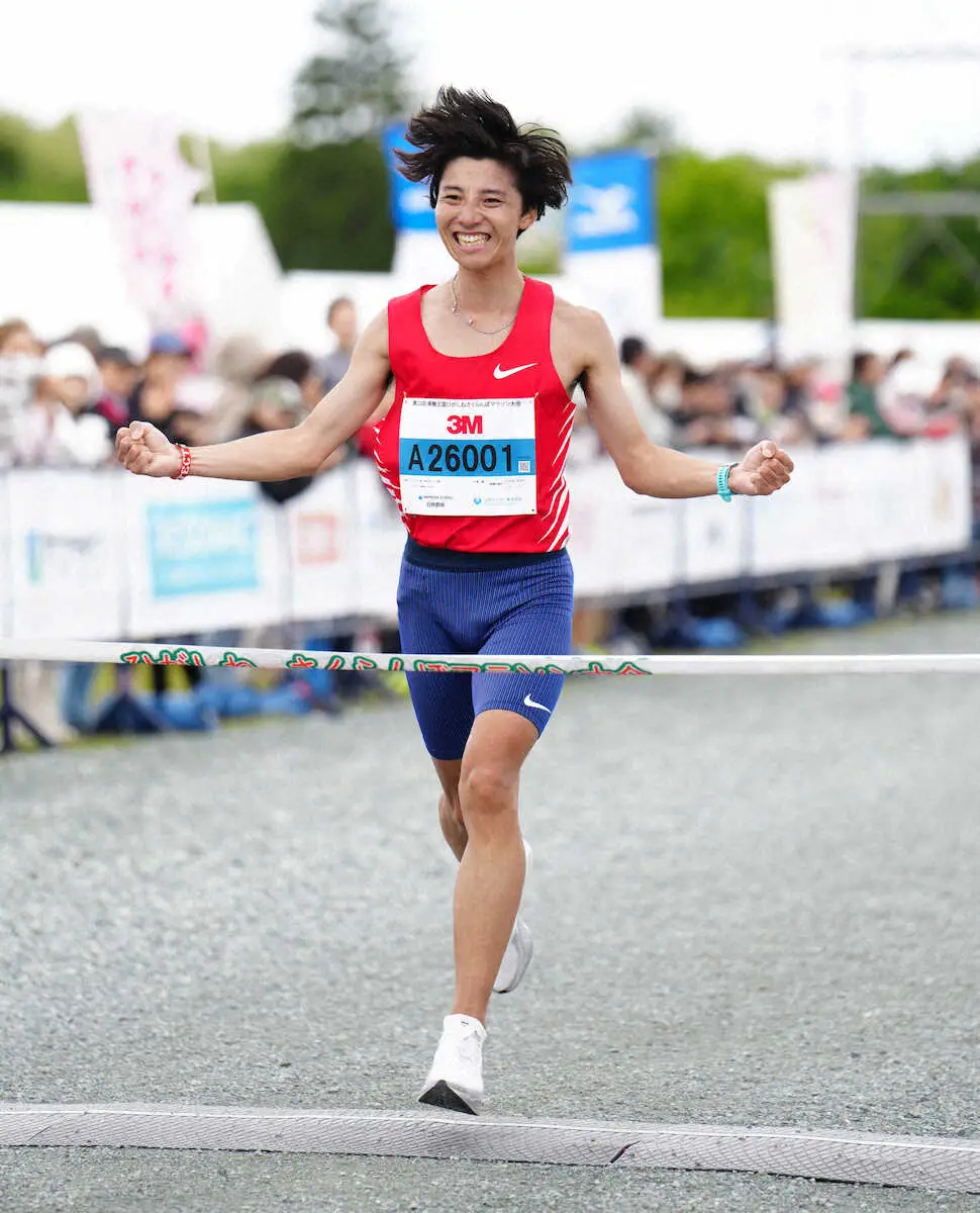 前週の東日本実業団陸上選手権(熊谷)に出場した際に左肋骨を負傷。それでも、痛みに耐えてゴール。「力のある(バラクロフ)ジェイク選手たちがいたので、最初から押していった」と序盤からの独り旅で強さを見せた。