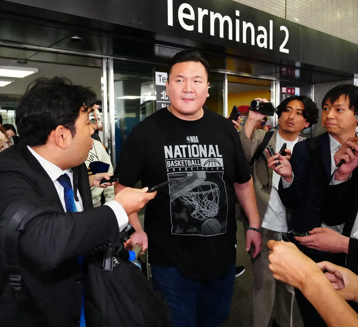 ≪出国時には直訳で「巨人」の文字が刻まれたTシャツ≫今旅行での宮城野親方はTシャツにデニムのラフな装いだった。出国時のシャツにはギリシャ語で「アバルガ」の文字が刻まれた。直訳は「巨人」の意味で、モンゴルではモンゴル相撲の横綱を表し、父ムンフバトさんへの敬意を示したとも解釈できる。帰国時は「NBA」のシャツを着用。幼少時はマイケル・ジョーダンに憧れバスケットボールに励んでいたこともあった。初心に返るというメッセージが込められていたのかもしれない。