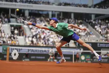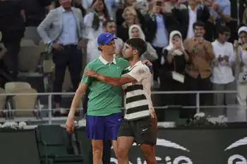 新時代をけん引する世界ランク1、2位の2人が、全仏史上に残る死闘を繰り広げた。まずはシナーが第1、2セットを連取。第1セットは5―4で迎えた第10ゲームをブレークして先取すると、タイブレークとなった第2セットはサービスエースからの5連続ポイントで抜けだし、7―4で制した。