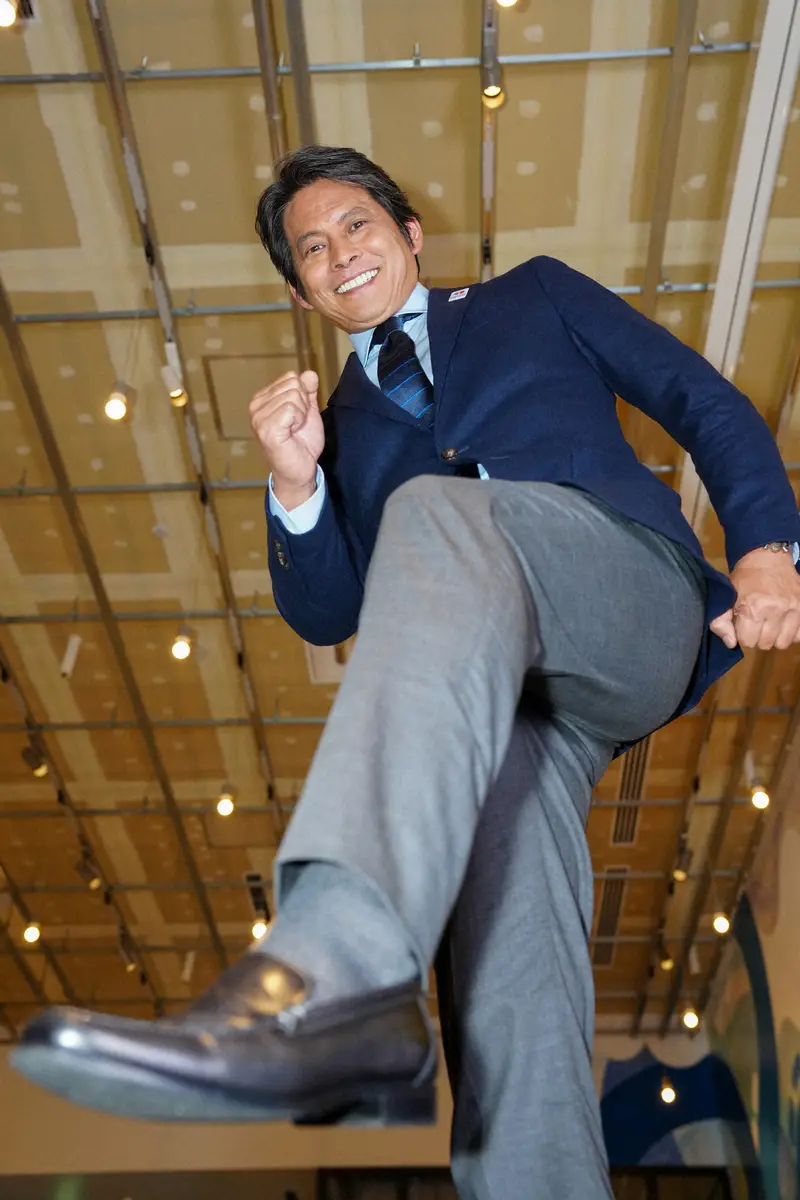 世界陸上へ。一歩を踏み出すスペシャルアンバサダーの織田裕二(撮影・河野 光希)
