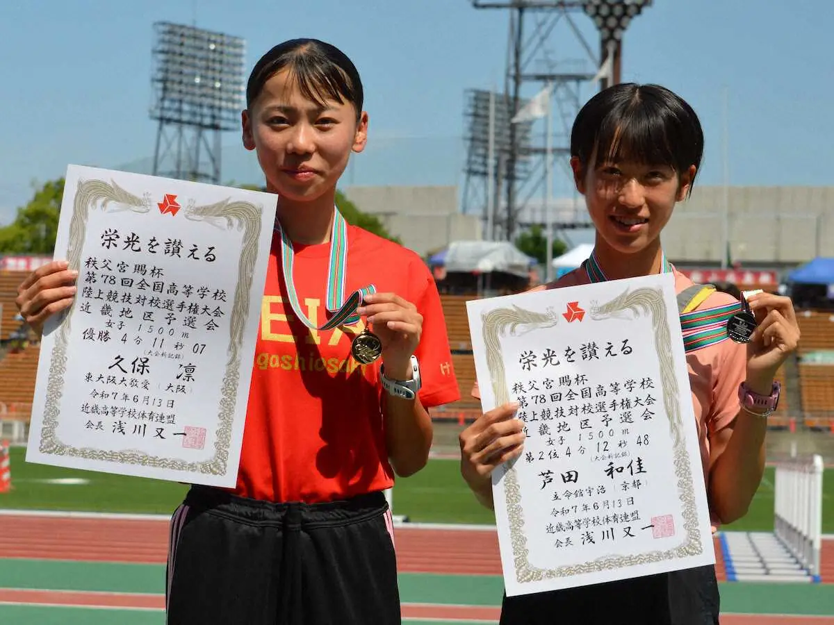 女子1500メートルの決勝が行われ、800メートル日本記録保持者の久保凛(東大阪大敬愛3年)が大会新記録となる4分11秒07をマークして2連覇を飾った。芦田和佳(あしだ・のどか、立命館宇治3年)が4分12秒48で2位となった。