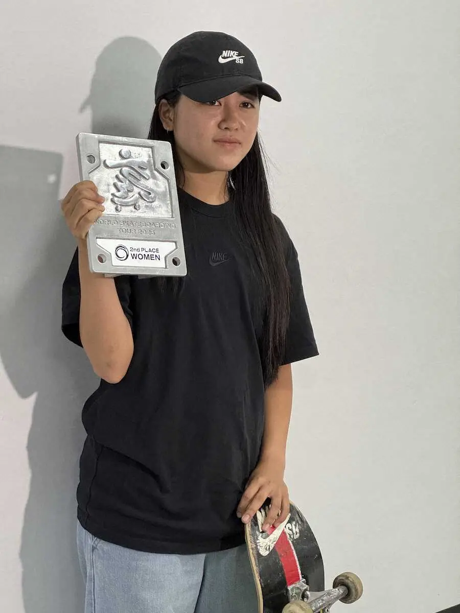 スケートボード・ストリートのワールドツアー・ローマ大会の女子で日本勢最上位となる2位に入った中山楓奈(20=ムラサキスポーツ)が17日、成田空港に帰国。「下の世代から追い上げが凄い中で2位はうれしい反面、1位との差が20点くらいあって、その部分では自信がない」と喜び半分、悔しさ半分の心境を打ち明けた。