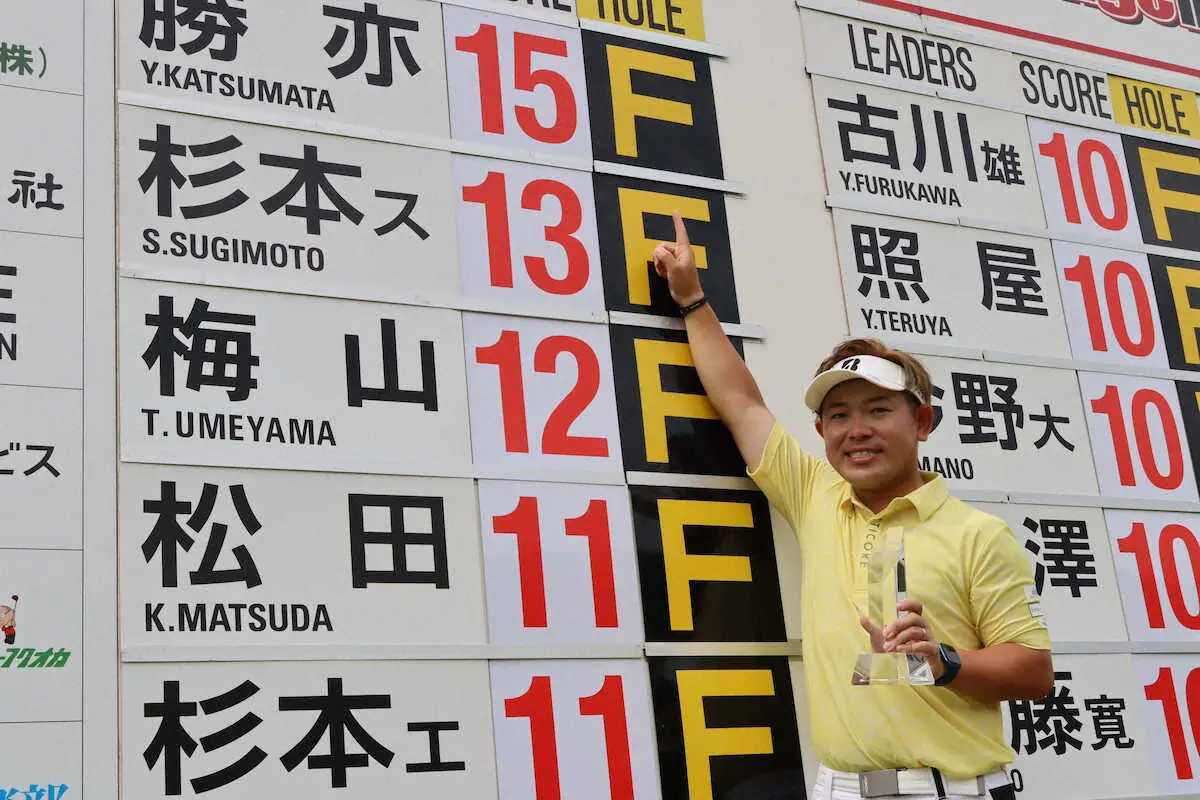 勝亦は前半アウトを33でターン。11、12番は連続ボギーとしたが、13番パー4で5メートルのバーディーパットを沈めると14、15番と3連続で取って盛り返し、最終18番もバーディー締め。後続に2打差をつけて逃げ切った。