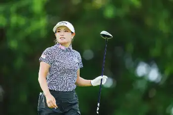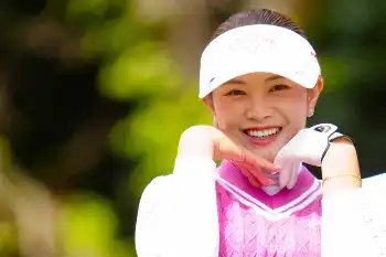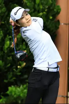 <アース・モンダミンカップ初日>3番、ティーショットを放つ山路晶(撮影・会津 智海)