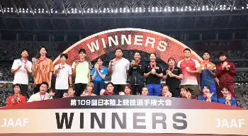 第109回日本陸上選手権大会 ウィナーズパレードでメダルを手にする選手たち=4日 国立競技場(代表撮影)