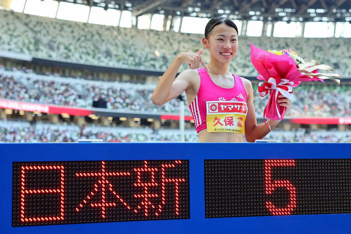 女子800メートル決勝で17歳のスーパー女子高生、久保凛(東大阪大敬愛高)が日本新記録となる1分59秒52をマークして連覇を達成した。昨年7月に自身が樹立した記録を0秒41更新。今大会での目標に掲げていた世界選手権の参加標準記録(1分59秒00)には届かなかったが、9月13日開幕の世界選手権東京大会での初代表入りへ大きく前進した。自国開催の大舞台では、ファイナル進出を目指して走ることを誓った。