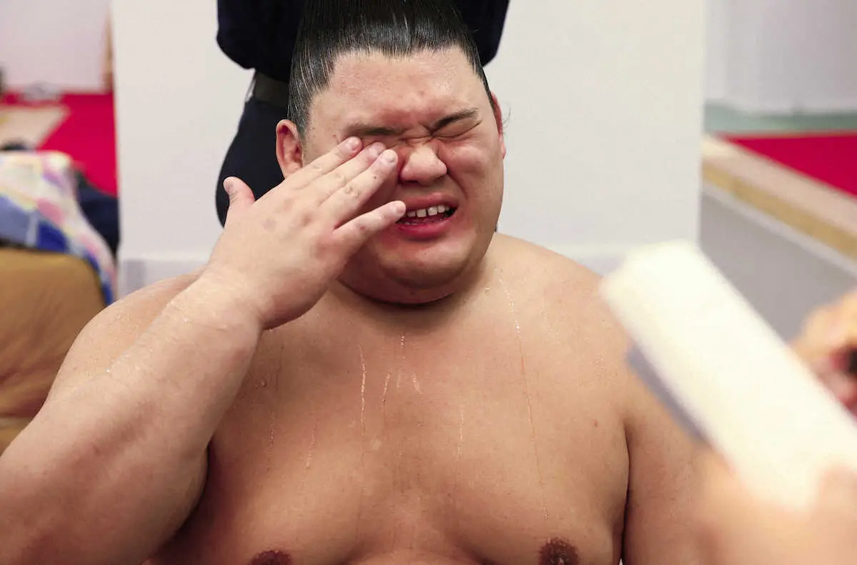 館内に座布団が舞う中、土俵上で顔をしかめると支度部屋では表情も伏し目がち。「足が出なかった。良くないところが出てしまった。明日から切り替えて集中して頑張りたい」と言葉を絞り出した。