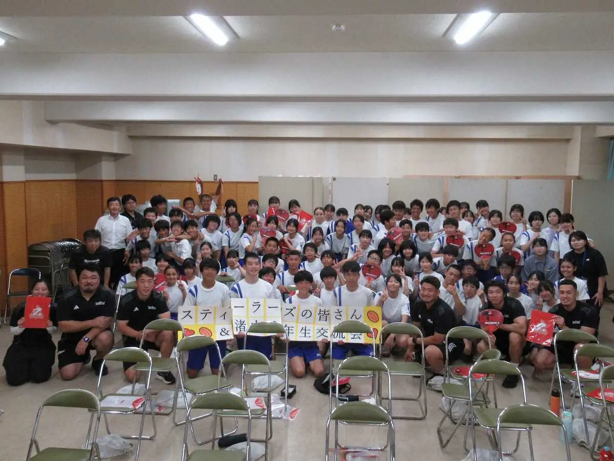 ラグビーリーグワン1部・神戸の選手とスタッフが16日、神戸市立渚中学校を訪問し、ラグビーの普及活動を行った。
