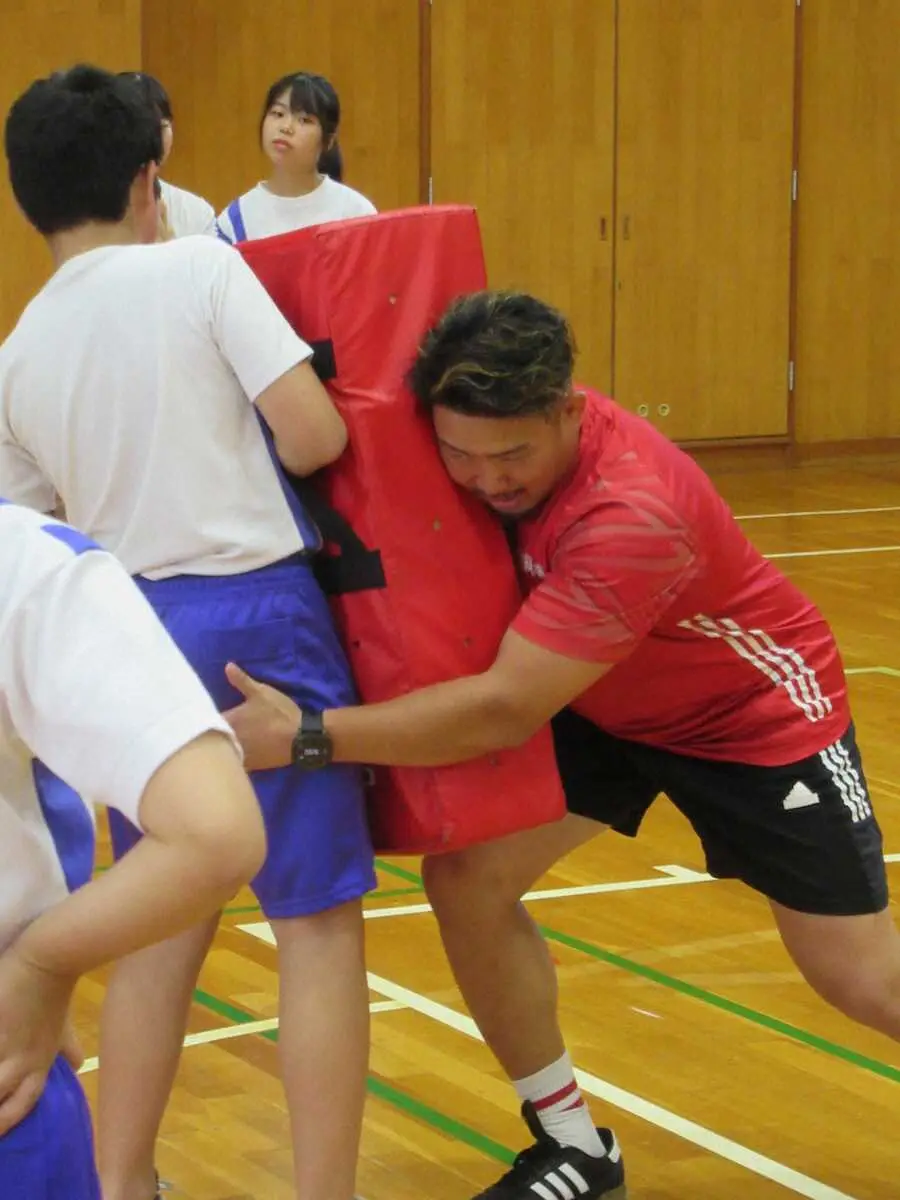 ラグビーリーグワン1部の神戸は17日、神戸市立渚中学校を訪問してラグビーの普及活動を行った。