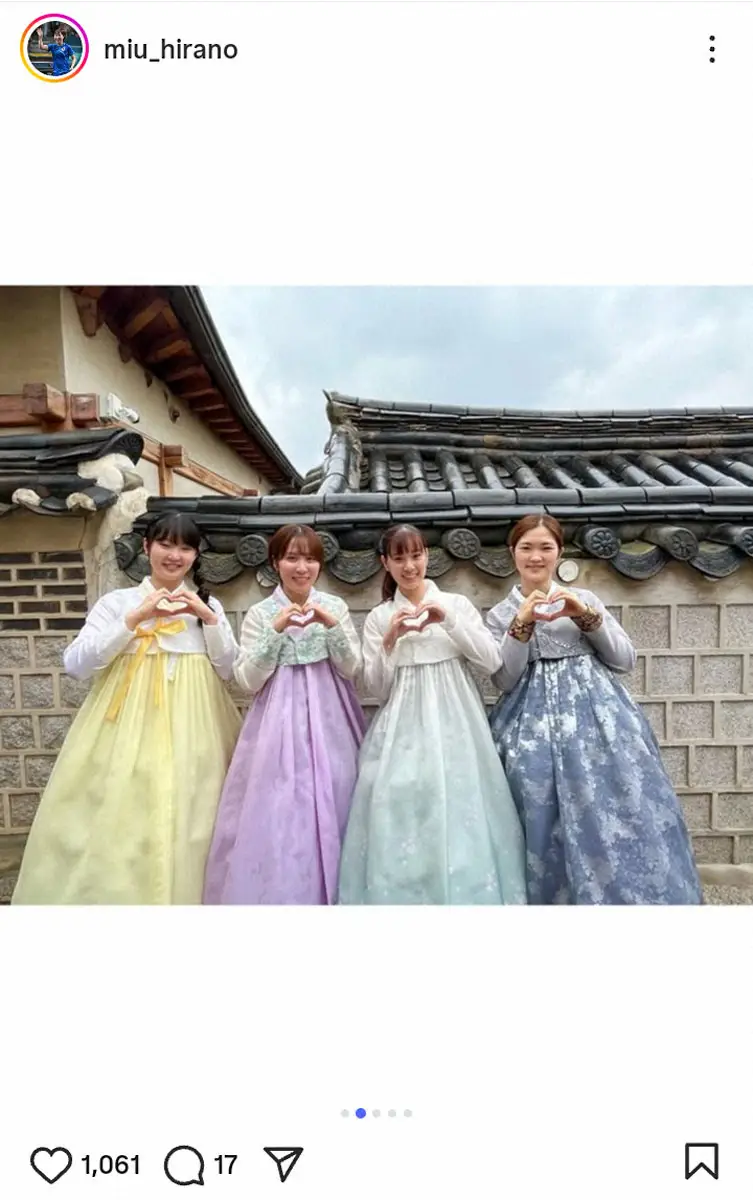 「木下アビエル神奈川Tリーグ優勝のご褒美で韓国旅行に行ってきました」とつづった平野。張本、長崎美柚、木原美悠とのプリクラやチマチョゴリの写真などを披露。「チームの皆んなと楽しめて最高でした。今シーズンも頑張るぞ」と記した。