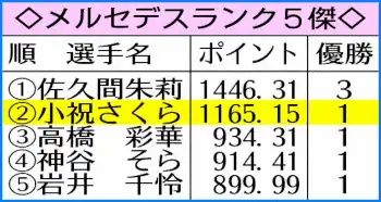 3打差10位から出た小祝さくら(27=ニトリ)が1イーグル、5バーディー、1ボギーの66をマークして逆転し、通算15アンダーで今季初勝利を飾った。通算12勝目で、19年のツアー初Vからの7年連続勝利は継続中の選手では最長。300ポイントが加算されたメルセデス・ランキングも2位に浮上した。クマ目撃情報で大会が3日間に短縮されたため、優勝賞金は75%の1350万円となった。