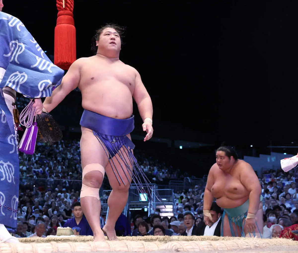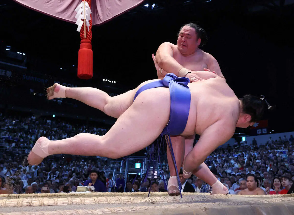 <名古屋場所・10日目> 大の里(右)を突き落としで破る玉鷲 (撮影・亀井 直樹) Photo by スポニチ 大の里まさかの3敗…40歳・玉鷲が快挙!最年長金星&勝ち越しで記録ずくめ… ギャラリーで見る この記事のフォト 2025年07月22日の画像一覧 もっと見る 2025年07月22日の画像をもっと見る
