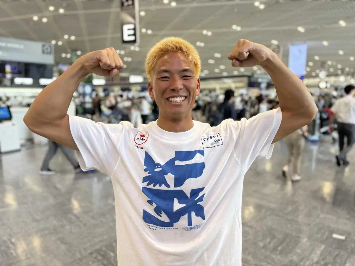 この日はブリーチしたという鮮やかな金髪だった西。トレードマークは赤髪で、現地到着後に赤く染めて、気合を入れるという。すでに海外の選手にも「西慶司郎=赤髪」は認知されているといい、「髪だけではなく、サーフィンでも目立てるように頑張る」と大会での活躍を誓った。